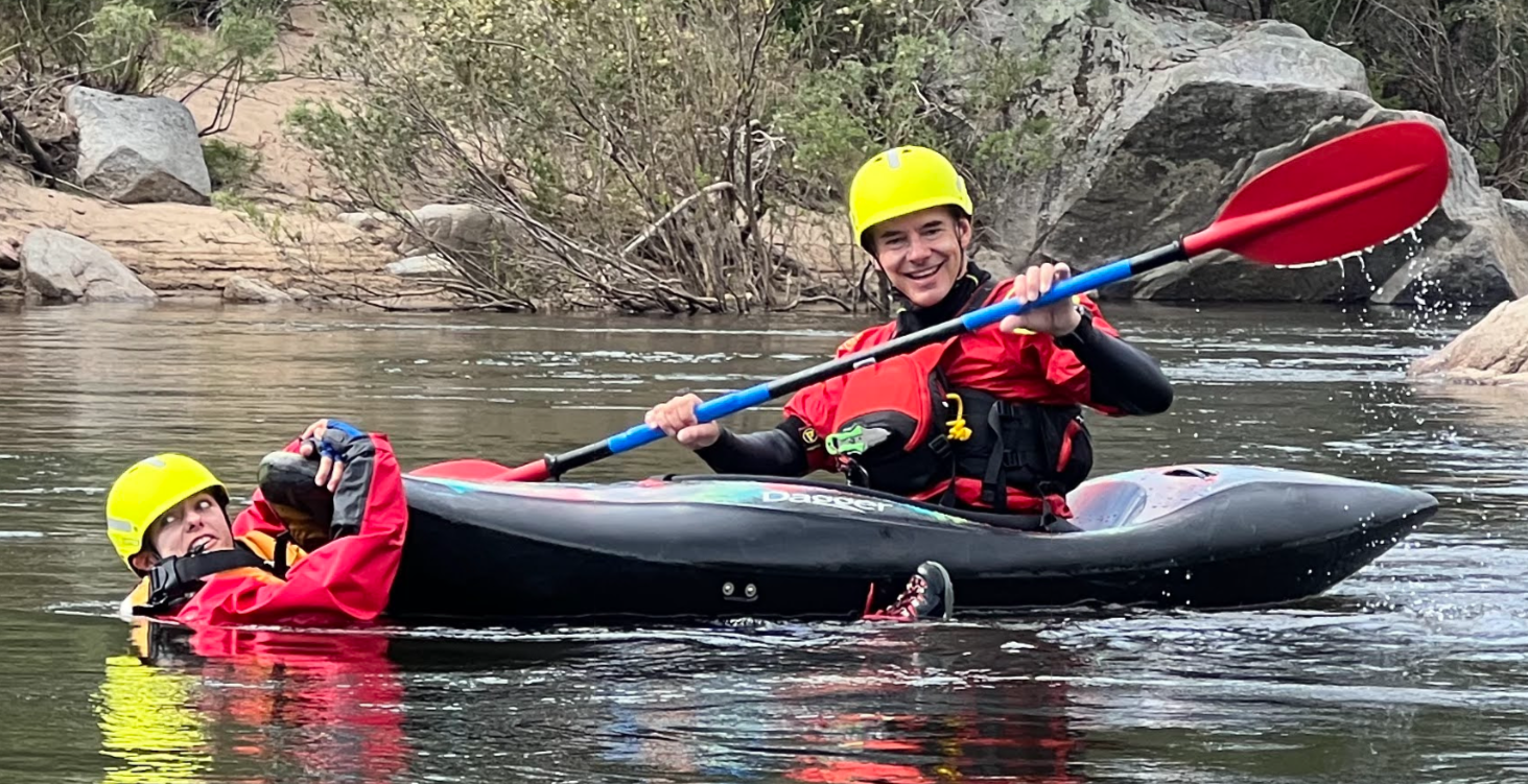 We will teach using hard-body creek or touring kayaks with a skirt. We don't intend to address other styles of boat, but if you have a canoe or packraft you'd like practice with, email to discuss.